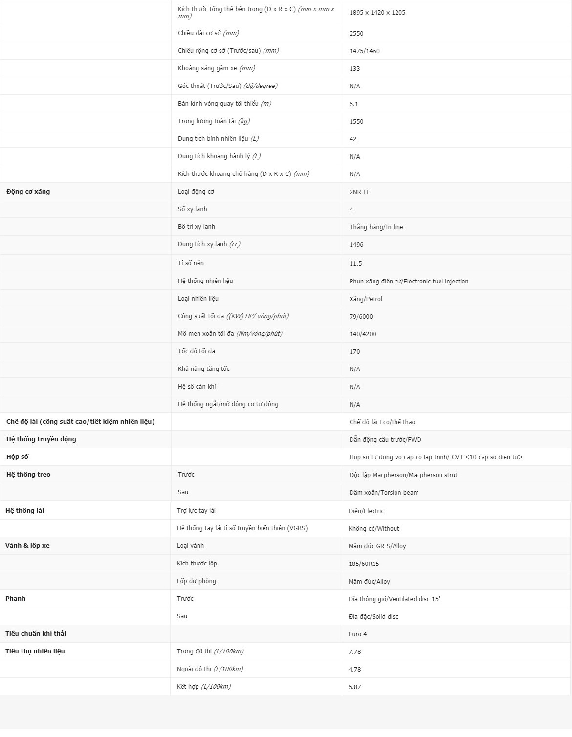 Động cơ 2NR-FE mới được trang bị hệ thống điều phối van biên thiên thông minh kép VVT-I mang lại hiệu suất vận hành cao ở mọi địa hình , cho phép tăng tốc êm ái ...